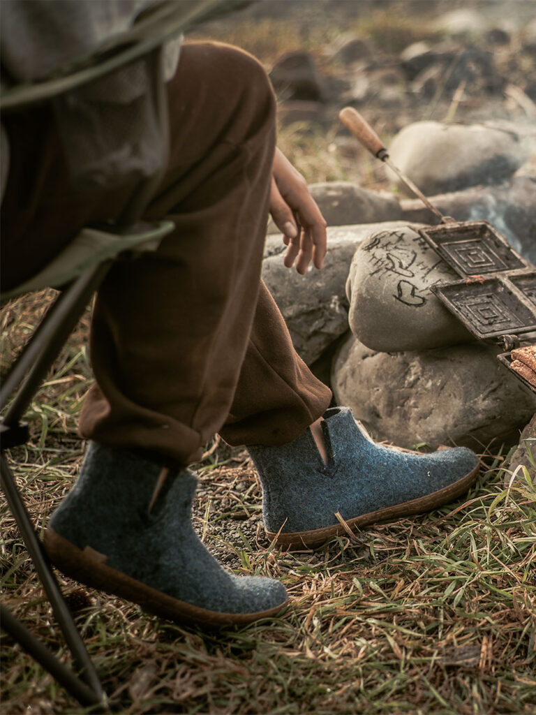 Wat de slipper bijzonder maakt, is niet alleen het materiaal maar het idee erachter. Hij is ontworpen voor ontspanning na activiteit, een rustmoment na een dag wandelen, kamperen of surfen. De dikke maar ademende wol houdt de voeten koel in de zon en warm bij het kampvuur. Comfort als logisch gevolg van natuurlijke balans.